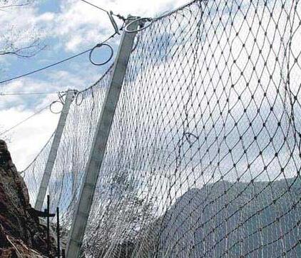RXI-150被動防護網(wǎng)網(wǎng)型為:R12/3/300;有上下兩條支撐繩,支撐繩的直徑為22mm,上拉錨繩與側(cè)拉錨繩直徑為18mm,形成八字形。
