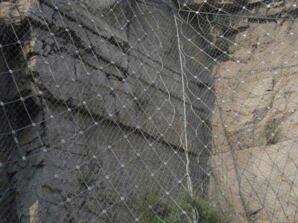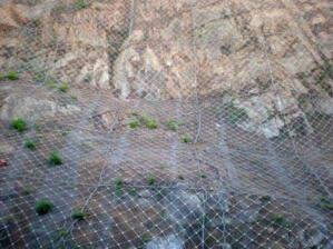 GAR2型主動防護(hù)網(wǎng)是采用Φ8的鋼絲繩(抗拉強(qiáng)度為1770Mpa,破斷拉力>40KN)編制并在結(jié)點(diǎn)處用專用“十字扣”固定而成,為邊坡防護(hù)網(wǎng)的主要特征構(gòu)件之一,在主動防護(hù)中通過鋼絲繩網(wǎng)的覆蓋來實(shí)現(xiàn)邊坡的加固,其開放特征可以實(shí)現(xiàn)對坡面天然植被和植被生長條件的最佳保護(hù),實(shí)現(xiàn)環(huán)境保護(hù)與災(zāi)害治理的有機(jī)結(jié)合;在被動防護(hù)系統(tǒng)中,其柔性特征充分體現(xiàn)了“以柔克剛”的思想,實(shí)現(xiàn)崩塌落石的有效攔截。
